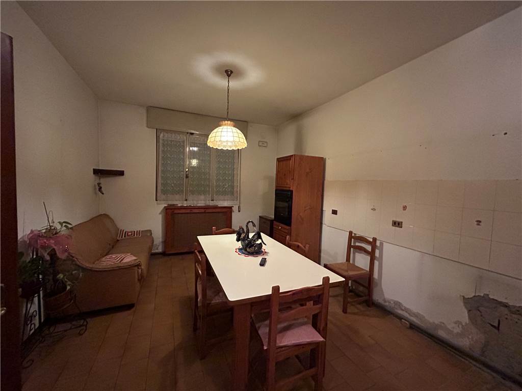A Vigarano Pieve proponiamo porzione di abitazione libera su tre lati con scoperto esclusivo, disposta su due livelli e dotata di garage. Al piano terra si trovano l'ingresso, il soggiorno, la sala da pranzo, una grande cucina abitabile, una stanza multiuso e un ripostiglio. Il piano primo ospita quattro camere da letto matrimoniali, un bagno e una stanza guardaroba. La proprietà comprende uno scoperto esclusivo sui tre lati liberi e un ampio garage di circa 16 mq. L'accesso avviene tramite cancello automatico. L'immobile si presente in buone condizioni esterne, mentre internamente necessita di interventi di ristrutturazione. La posizione è a pochi minuti dal centro del paese, è servito di trasporto, si trova a breve distanza da negozi e attività commerciali ed è a circa 20 minuti dal centro di Ferrara